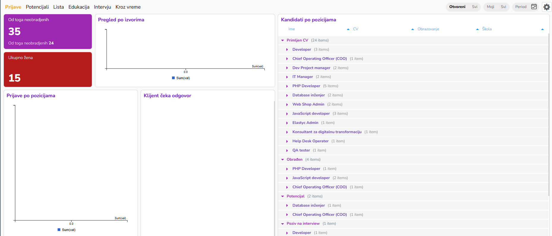 Statistika i analitika- Poslodavci mogu pratiti i analizirati različite metrike vezane za zapošljavanje, kao što su broj prijava, izvor prijava, vreme za popunjavanje pozicije i mnoge druge.