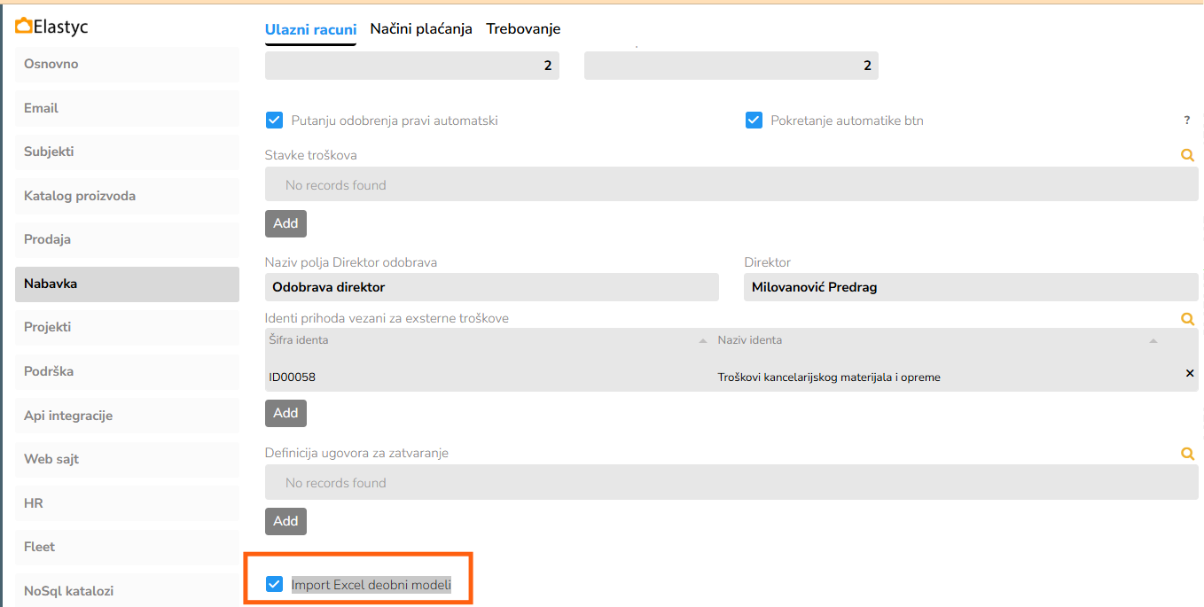 Treći vid unosa računa jeste uploadom Excel dokumenta u odgovarajucem formatu. Opcija Import Excel deobni modeli mora biti uključena u podešavanjima.