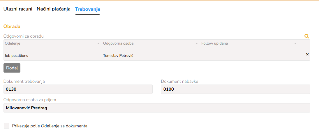 Odobreni dokumenti su u nadležnosti zaduženih za njihovo knjiženje , odakle proverom svih podataka se kreiraju i knjiže ulazni računi sa postojećim podacima.