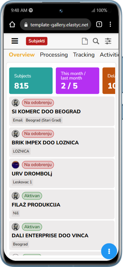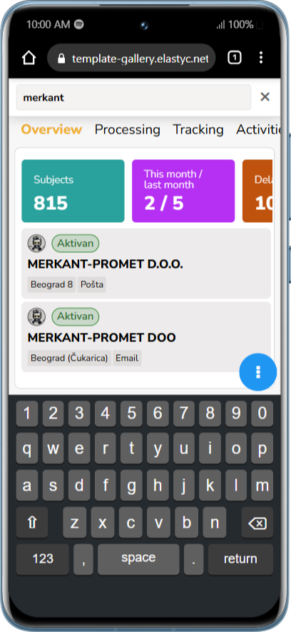 Klikom na ikonicu lupice otvara se search input bar gde unosom parametara za pretragu lista osvežava u realnom vremenu!