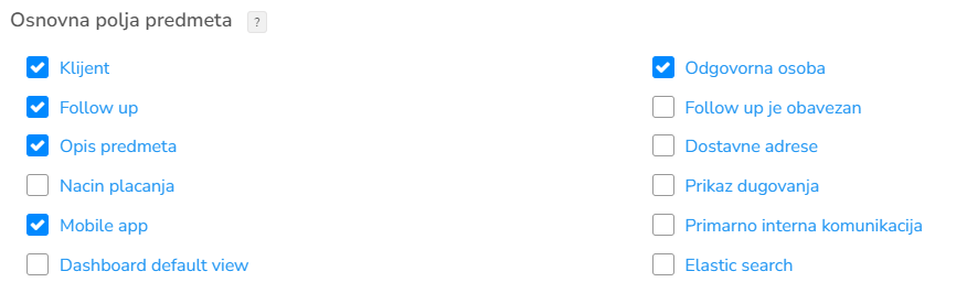Kod predmeta koje se odnose na klijenta ovo polje treba biti štiklirano u suprotnom ne treba biti kako se nepotrebna polja ne bi prikazivala.