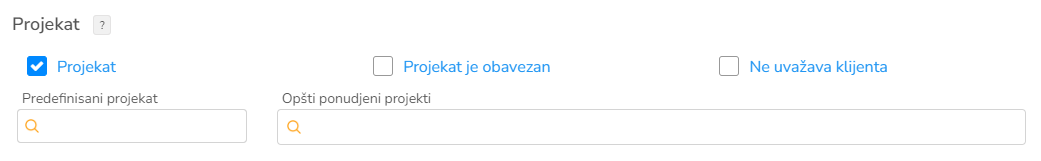 Prilikom otvaranja novog predmeta polje projekta će automatski biti popunjeno definisanom vrednošću.