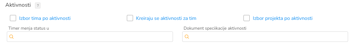 U koliko je izabrana ova opcija prilikom unosa aktivnosti će ponuditi da korisnik definiše tim ljudi koji je učestvovao u realizaciji aktivnosti.