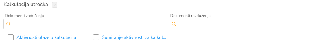 U segmentu za kalkulaciju utrošaka, u polja dokumenti zaduženja i dokumenti razduženja, iz padajuće liste, biramo konkretna dokumenta za predmete na koje se odnose.