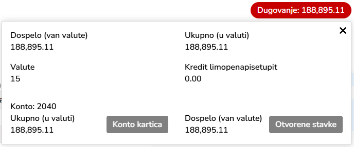 Procedura koja vraća ukupno i dospelo dugovanje po svakom kontu pojedinačno.