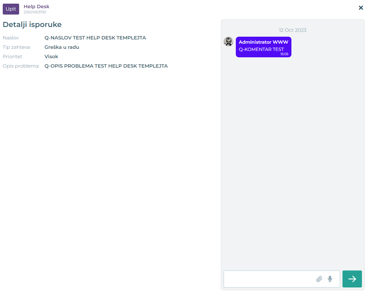 Nakon odabira zahteva dobijamo detaljnije informacije o samom problemu.
