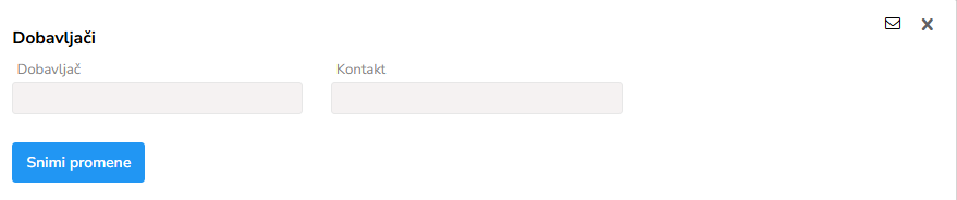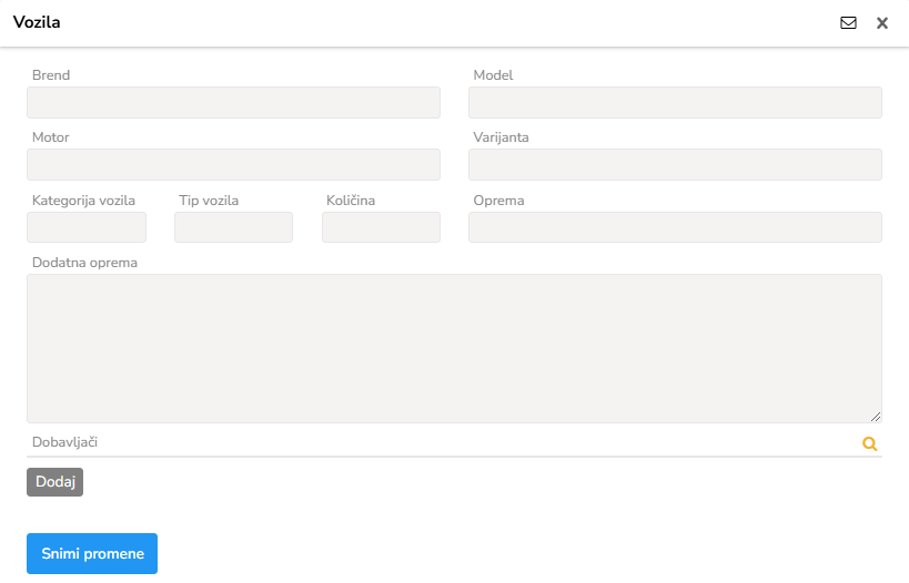 Pretražite željenu vrstu Dobavljača ako je uneta. U suprotnom stisnite dodaj, i unesite sve detalje dobavljača za uneto vozilo. Tu spadaju: Dobavljač, Kontakt.
