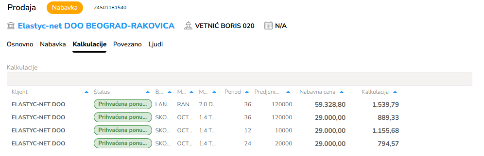 Sve unete vrednosti sa prethodno opisanih polja se prepisuju na Ponudu, koja će se kreirati iz dotične Prodaje.