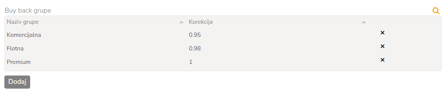 Izaberite BB grupa, koja je definisana u postavkama. Možete izabrati jednu od sledećih predefinisanih vrednosti: Flotna, Komercijalna, Premium.