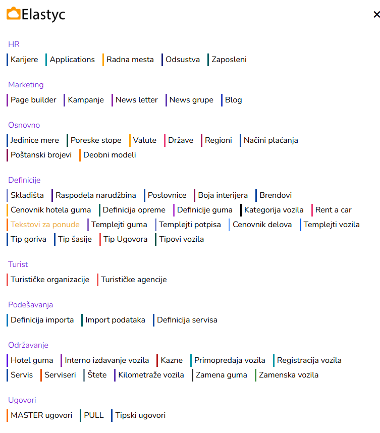 Izborom predmeta Tekstovi za ponudu u meniju svih predmeta, otvara se lista svih kreiranih Tekstovi za ponudu i mogućnost kreiranja novog teksta